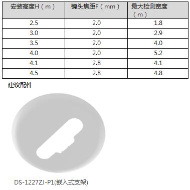 1)根據(jù)安裝高度進行鏡頭焦距選型,2.5-4.0 米需選擇2.0mm 型號,4.0-4.5 米需選擇2.8mm 型號.