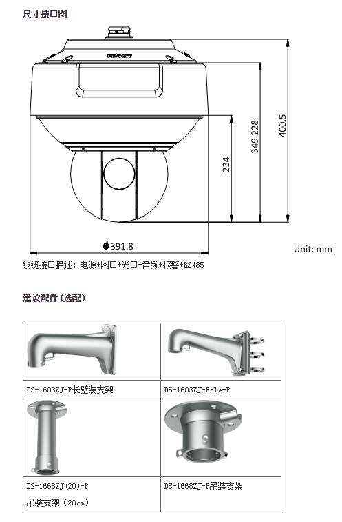 iDS-2DP0818ZIX-D/253(5mm)星光級(jí)全景網(wǎng)絡(luò)高清智能球機(jī),采用一體化設(shè)計(jì),單產(chǎn)品即可同時(shí)提供全景與特寫畫面,兼顧全景與細(xì)節(jié)。其中全景畫面由4個(gè)傳感器拼接而成,可實(shí)現(xiàn)180度的全景監(jiān)控;一體化機(jī)芯和高速云臺(tái)設(shè)計(jì),在全景監(jiān)控的同時(shí)為用戶提供快速細(xì)節(jié)定位功能。另外鷹眼系列全景球機(jī)還集成了先進(jìn)的視頻分析算法和多目標(biāo)跟蹤算法程序,可實(shí)現(xiàn)自動(dòng)或手動(dòng)對(duì)全景區(qū)域內(nèi)的多個(gè)目標(biāo)進(jìn)行區(qū)域入侵、越界、進(jìn)入?yún)^(qū)域、離開區(qū)域行為的檢測,并可輸出報(bào)警信號(hào)和聯(lián)動(dòng)云臺(tái)跟蹤,從而滿足高等級(jí)要求的安保需求。