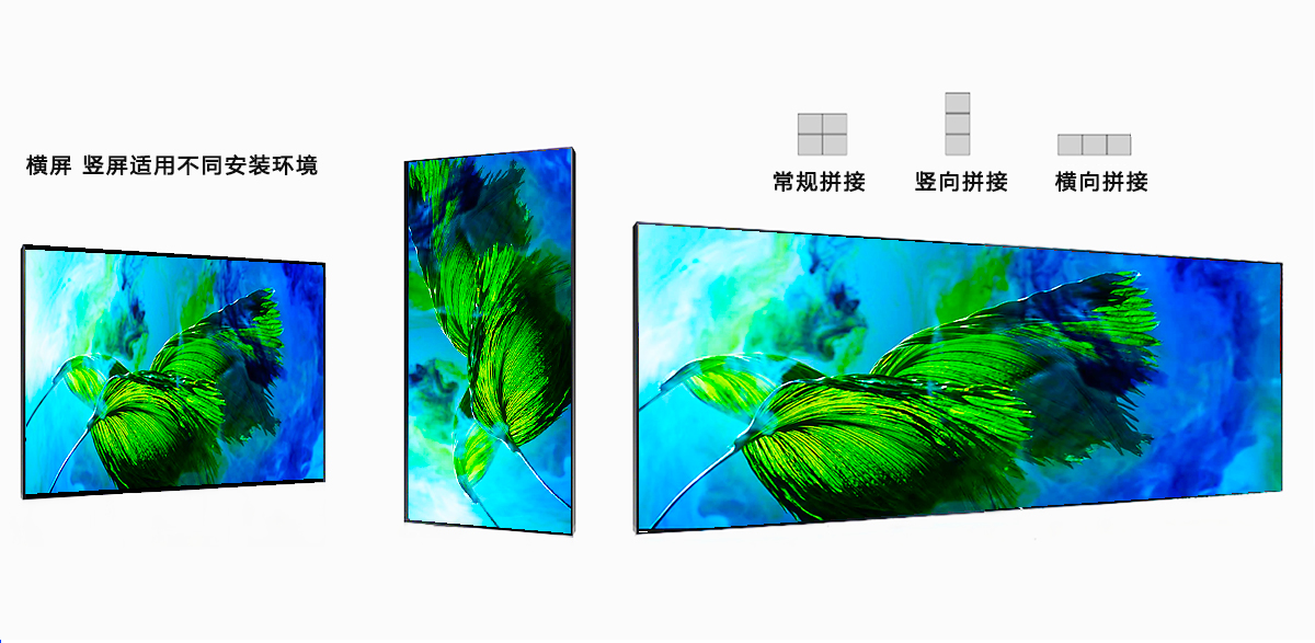 ②支持橫屏、豎屏、弧形、菱形等多種拼接顯示方式